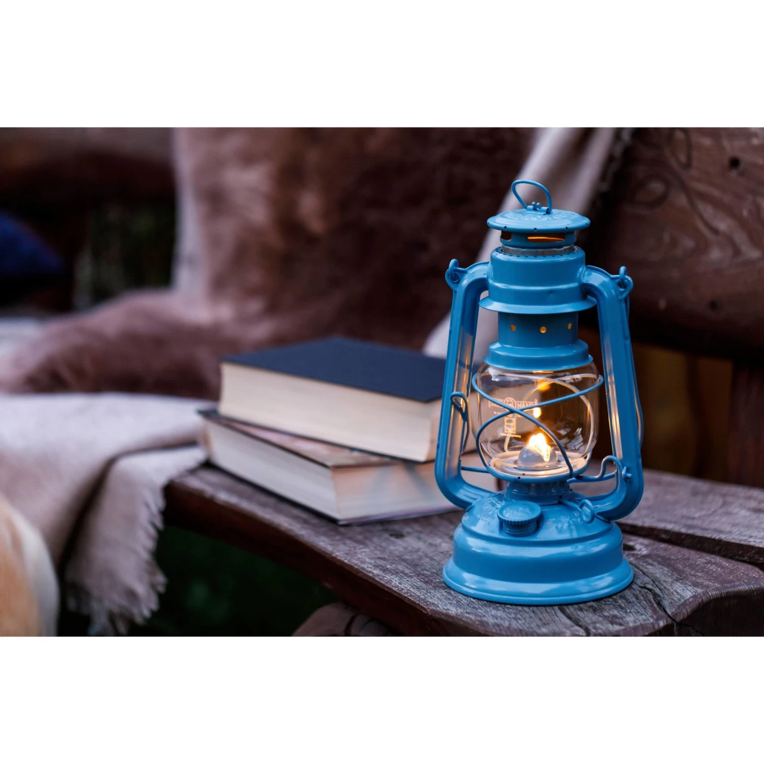 Diese primäre Lichtquelle trotzt Regen, Sturm und Schnee. Die Sturmlaterne ‚Baby Special 267‘ von Feuerhand in zartem Pastellblau eignet sich perfekt für den Außenbereich als Terrassen-, Weg- oder auch Partyleuchte und überzeugt mit einer Brenndauer von etwa 20 Stunden. Es bleibt nur noch, den Tank mit Lampenöl oder Petroleum zu befüllen und die Flamme anzuzünden.