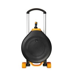 Fiskars Schlauchwagen Waterwheel Automatik XL, Für ½‘-5/8″, Schlauchdüse, Rasenspieß, Schwarz-orange