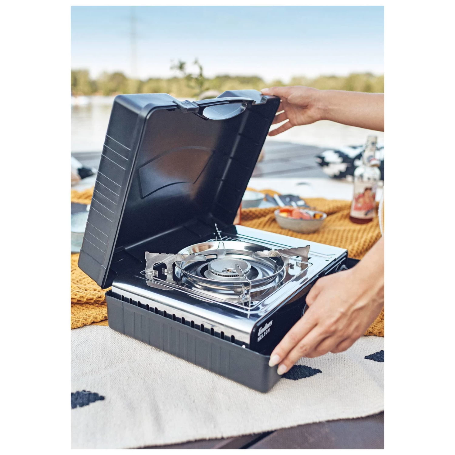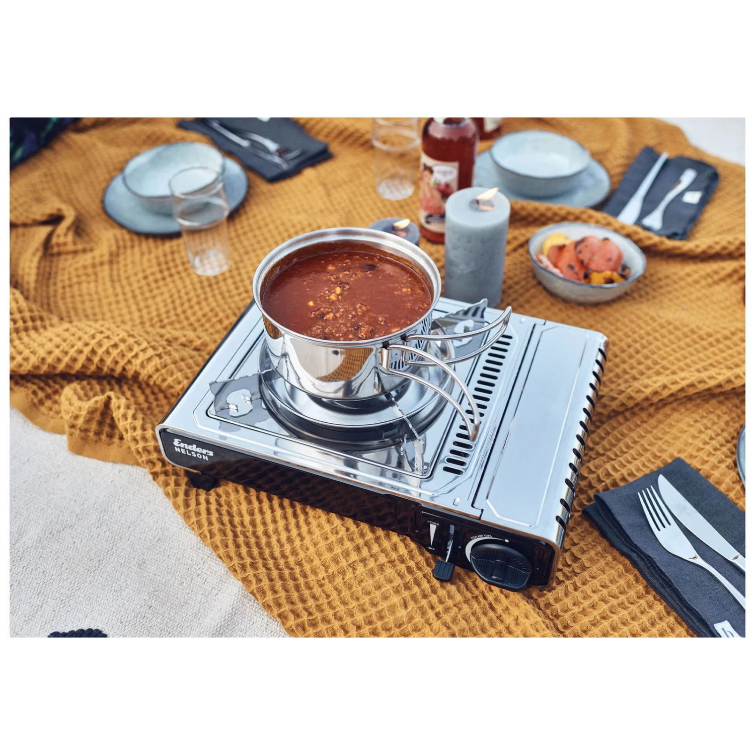 Der Kartuschenkocher ‚Nelson‘ von Enders ist Ihr leistungsstarker Begleiter beim Camping oder eine vielseitige Outdoor-Kochstelle im Schrebergarten. Der 2,2 Kilowatt starke Brenner ist stufenlos einstellbar, der Topfrost und das Gehäuse bestehen aus strapazierfähigem Edelstahl und um die Sicherheit kümmern sich der Überhitzungsschutz und die Überdruck-Sicherheitsabschaltung. Für bequemen Transport sorgt ein mitgelieferter Koffer.