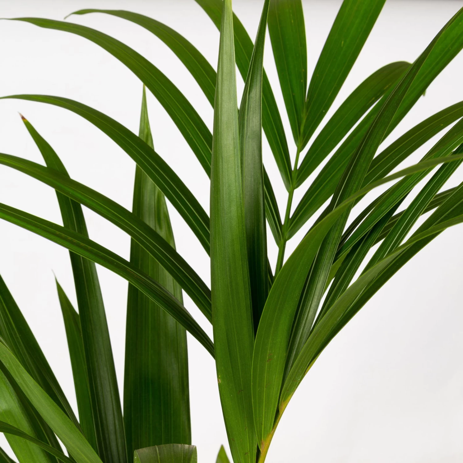 Die Kentiapalme (Howea forsteriana) ist eine langsam wachsende Art, die auf der Lord-Howe-Insel bei Australien beheimatet ist. Diese elegante und pflegeleichte Palme besticht durch ihre fiedrigen, ausladenden Wedel. Suchen Sie für Ihre Howea forsteriana einen hellen Stellplatz aus, an dem die Zimmerpalme vor direkter Sonneneinstrahlung geschützt ist. Halbschattige Standorte werden ebenfalls toleriert, verlangsamen jedoch die Wachstumsgeschwindigkeit noch mehr. Der Wasserbedarf der Kentiapalme ist moderat, Staunässe und Trockenheit sind unbedingt zu vermeiden. Regelmäßige Sprühbäder im warmen, kalkarmen Wasser tun der Palme gut. Pflegen Sie die Howea forsteriana nur in beheizten Innenräumen, da die Umgebungstemperaturen zu keinem Zeitpunkt unter 15 Grad Celsius fallen dürfen.
