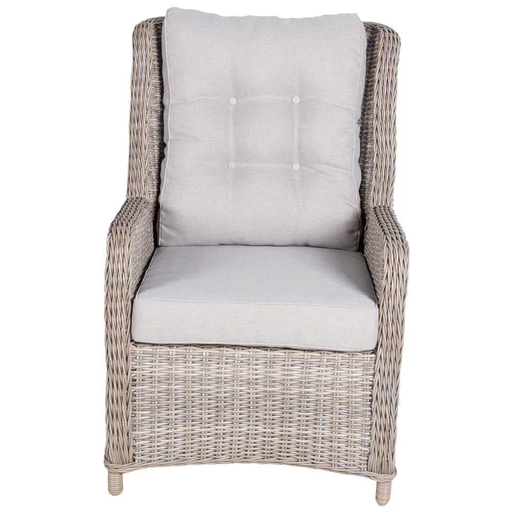Der Kölle Geflecht-Sessel ‚Heidelberg‘ erhält seine tolle Optik durch die schöne Oberfläche aus Polyrattan. Dieser ummantelt ansprechend das Aluminiumuntergestell und setzt das Möbelstück so gekonnt in Szene. Zudem punktet der Outdoorsessel mit hohem Sitzkomfort und eignet sich so ideal zum Entspannen, Sonnen oder Lesen im Freien. Die beiliegende Auflage sorgt für einen zusätzlichen Behaglichkeitsfaktor. Dank seiner UV-beständigen sowie frostfesten Beschaffenheit kann das Gartenmöbel problemlos das ganze Jahr über draußen stehen bleiben. Der Gartensessel ist in stabiler sowie leichter Qualität gefertigt. Der Kölle Geflecht-Sessel ‚Heidelberg‘ sorgt für einen gemütlicheren Außenbereich.