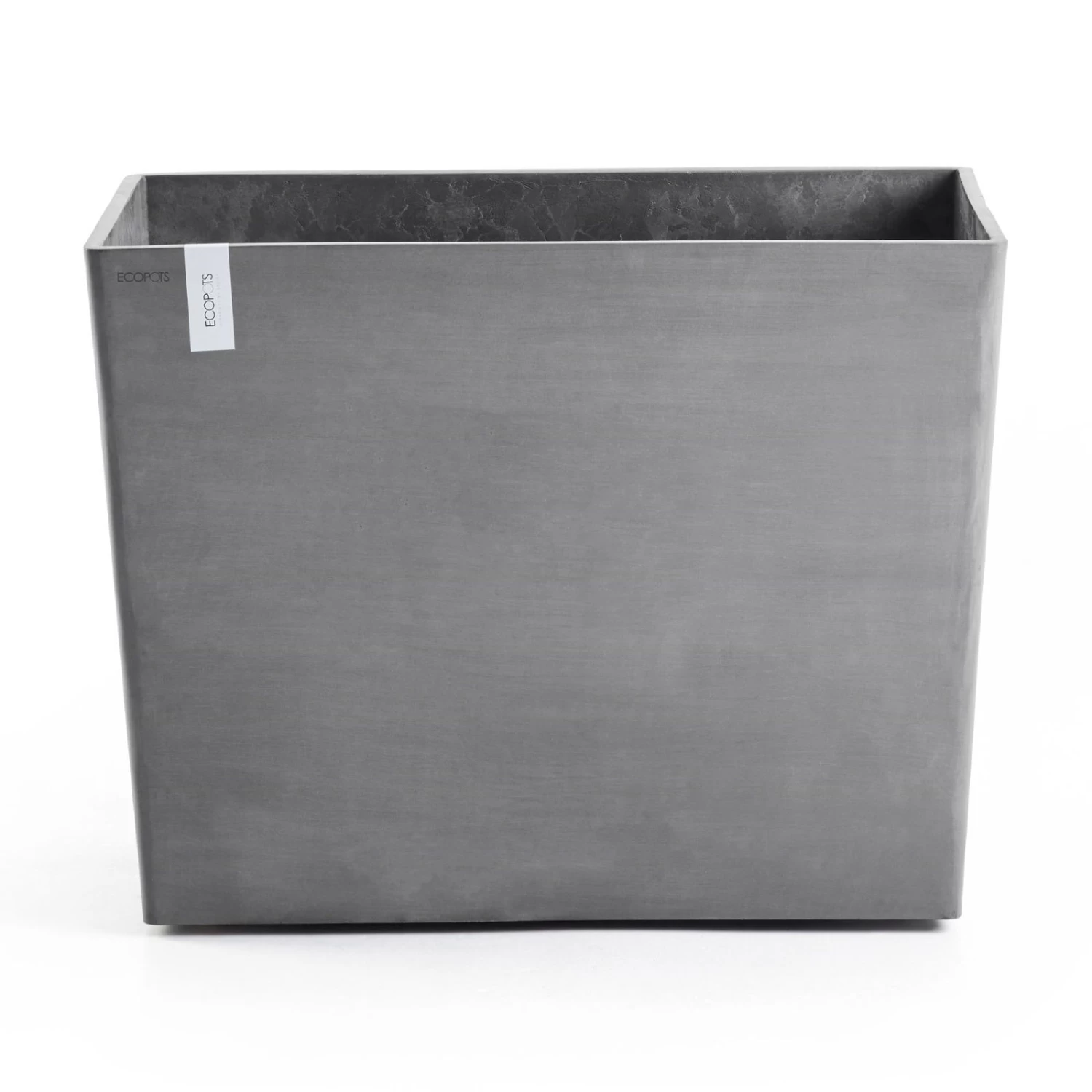 Dieser Pflanzkasten in angesagter Betonoptik besteht aus UV-resistentem, frost- und bruchsicherem Recyclingmaterial. Der graue Pflanzentrog ‚Paris‘ von Ecopots überzeugt durch seine moderne, klare Linienführung und imposante Maße. Dabei verleihen die integrierten Rollen dem Pflanzgefäß ein Plus an Mobilität.