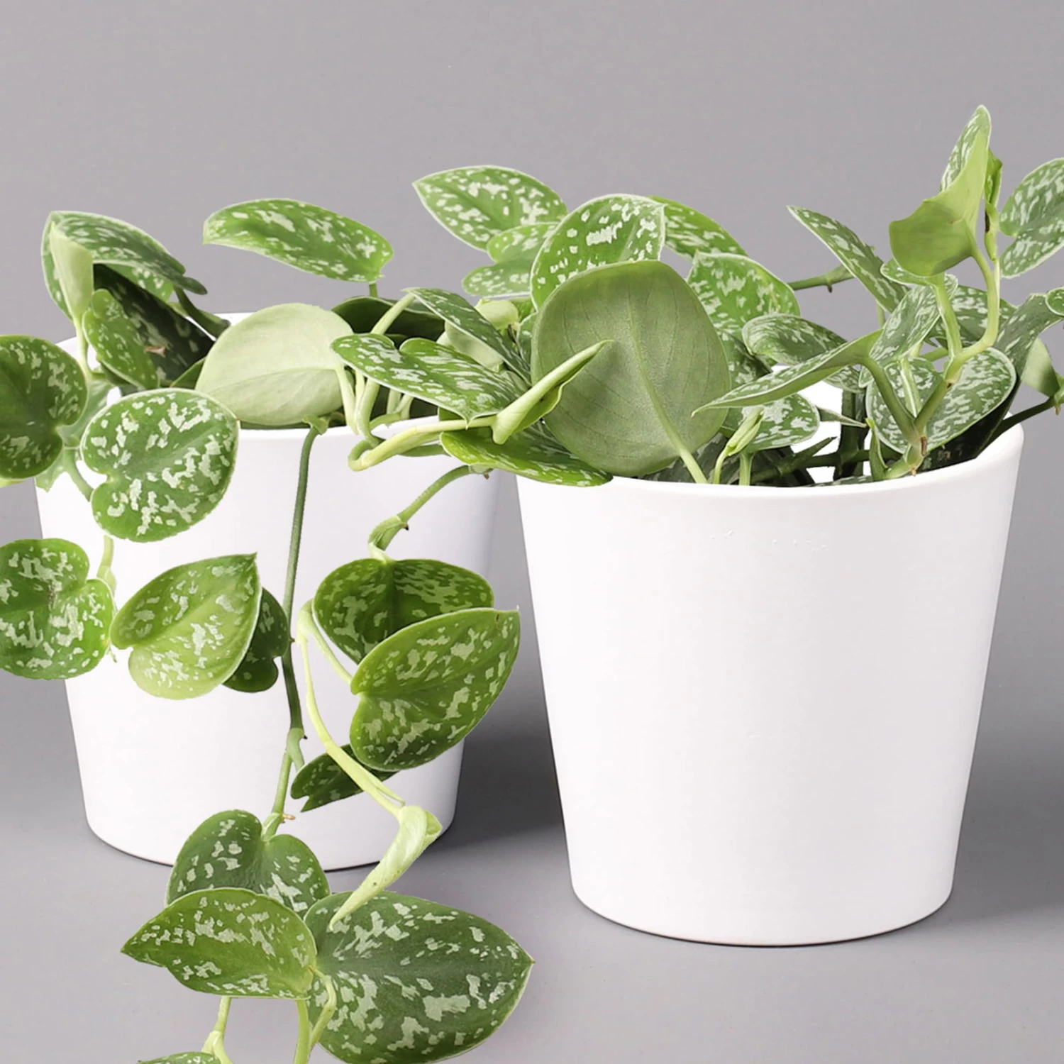 Jede Pflanze wird im Pflanztopf mit 12 cm Ø inkl. Keramiktopf Dallas mit 14 cm in weiß matt geliefert.
